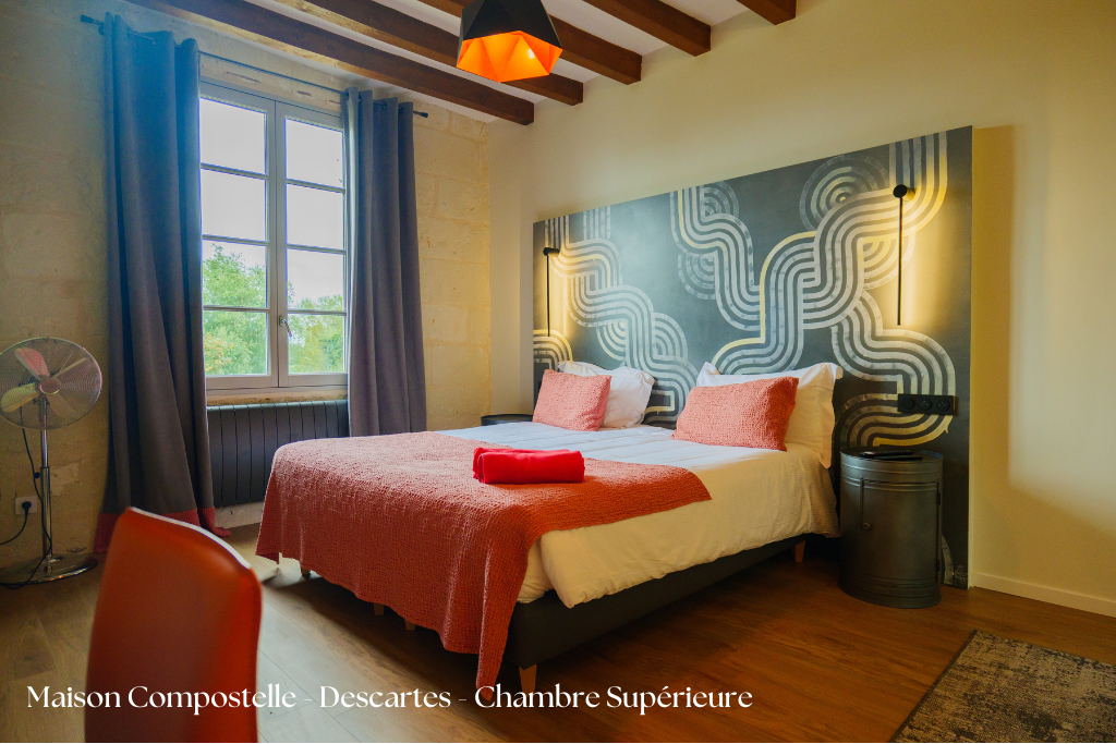 La Maison Compostelle avec ses 6 chambres, est située à l'entrée du Domaine, face à la Loire, à proximité de l'espace Réception et de notre restaurant Le Baladin. Point de départ idéal pour découvrir à pied les villages de Candes Saint-Martin et Montsoreau.