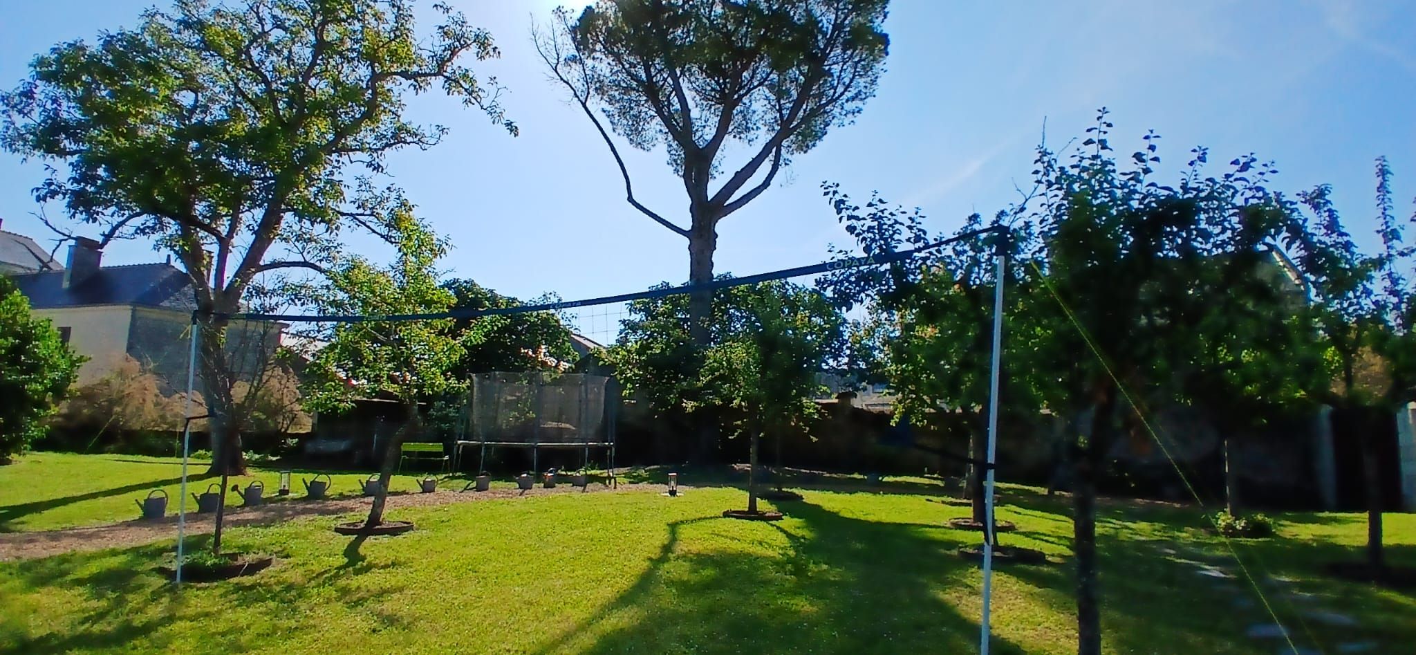 Parce que les vacances en famille riment avec rires et moments partagés, un petit espace de jeux a été aménagé au cœur du domaine pour le plaisir des enfants… et des parents. Trampoline, filet de badminton, grands espaces pour courir et s’amuser : tout est réuni pour que les plus jeunes se dépensent en toute liberté pendant que les adultes profitent du cadre naturel et paisible du parc.
